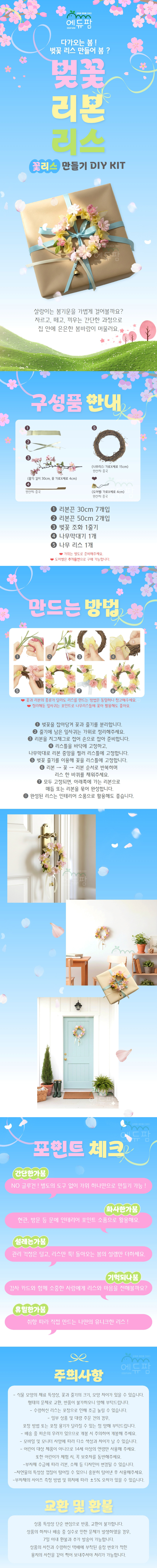 벚꽃 리본 리스 DIY키트 체험 인테리어 벽장식