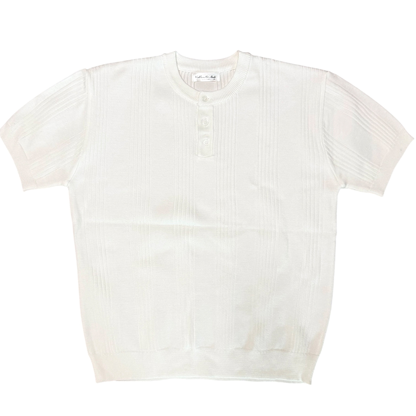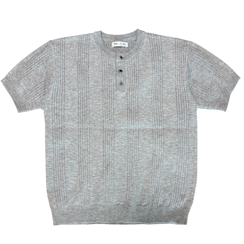 남자 리브드 헨리넥 골지 반팔 니트티 RB-TSH-Q091