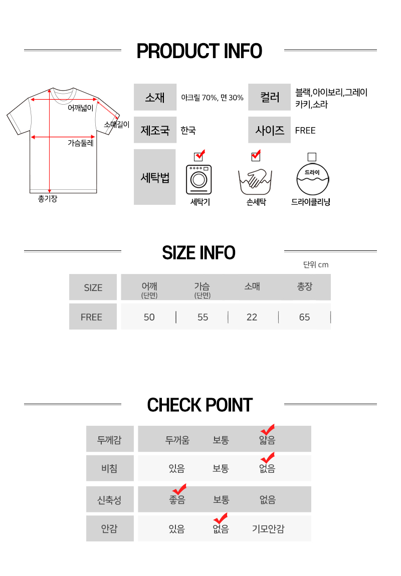 세탁방법 및 취급시 주의사항 제품 상세정보 참고